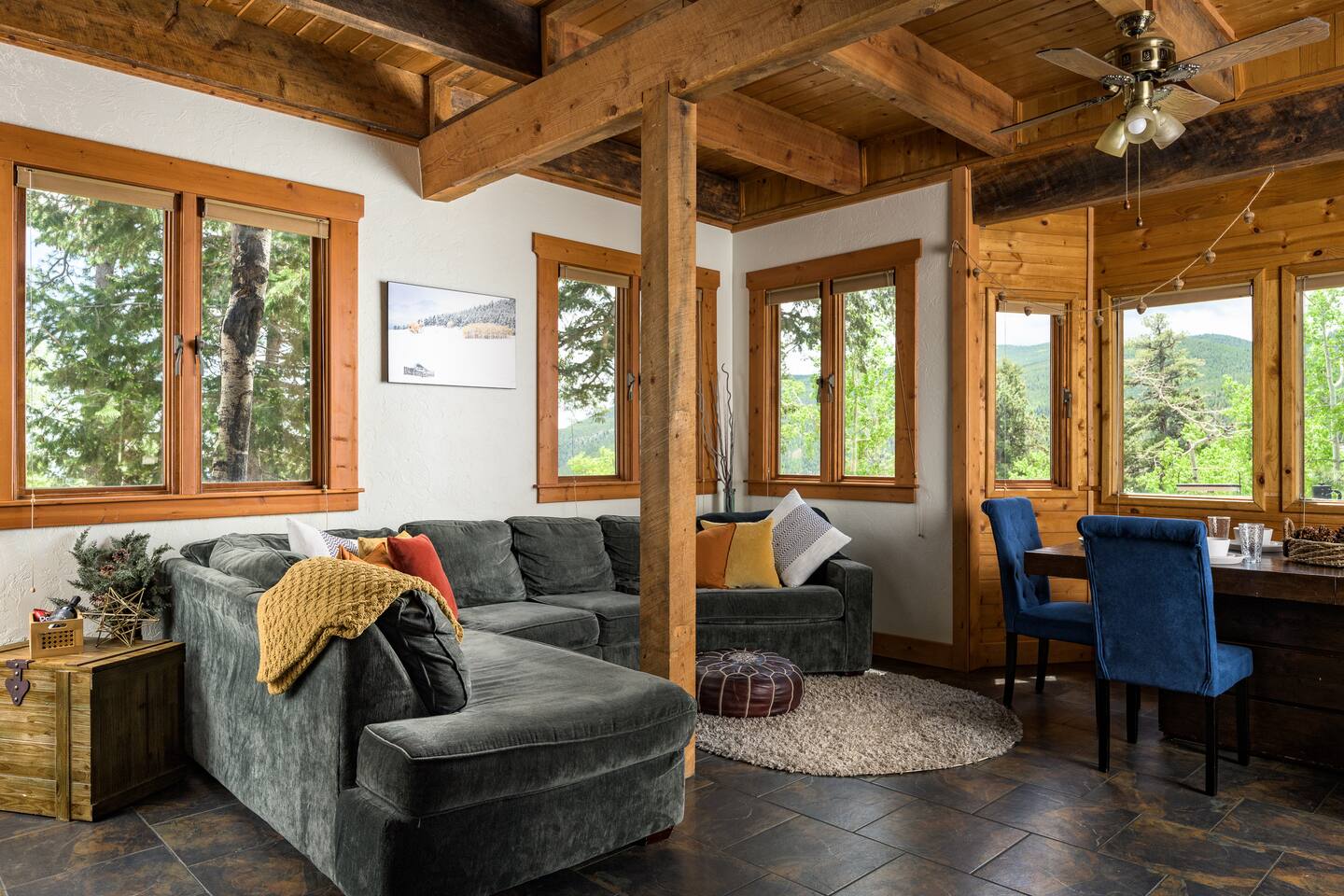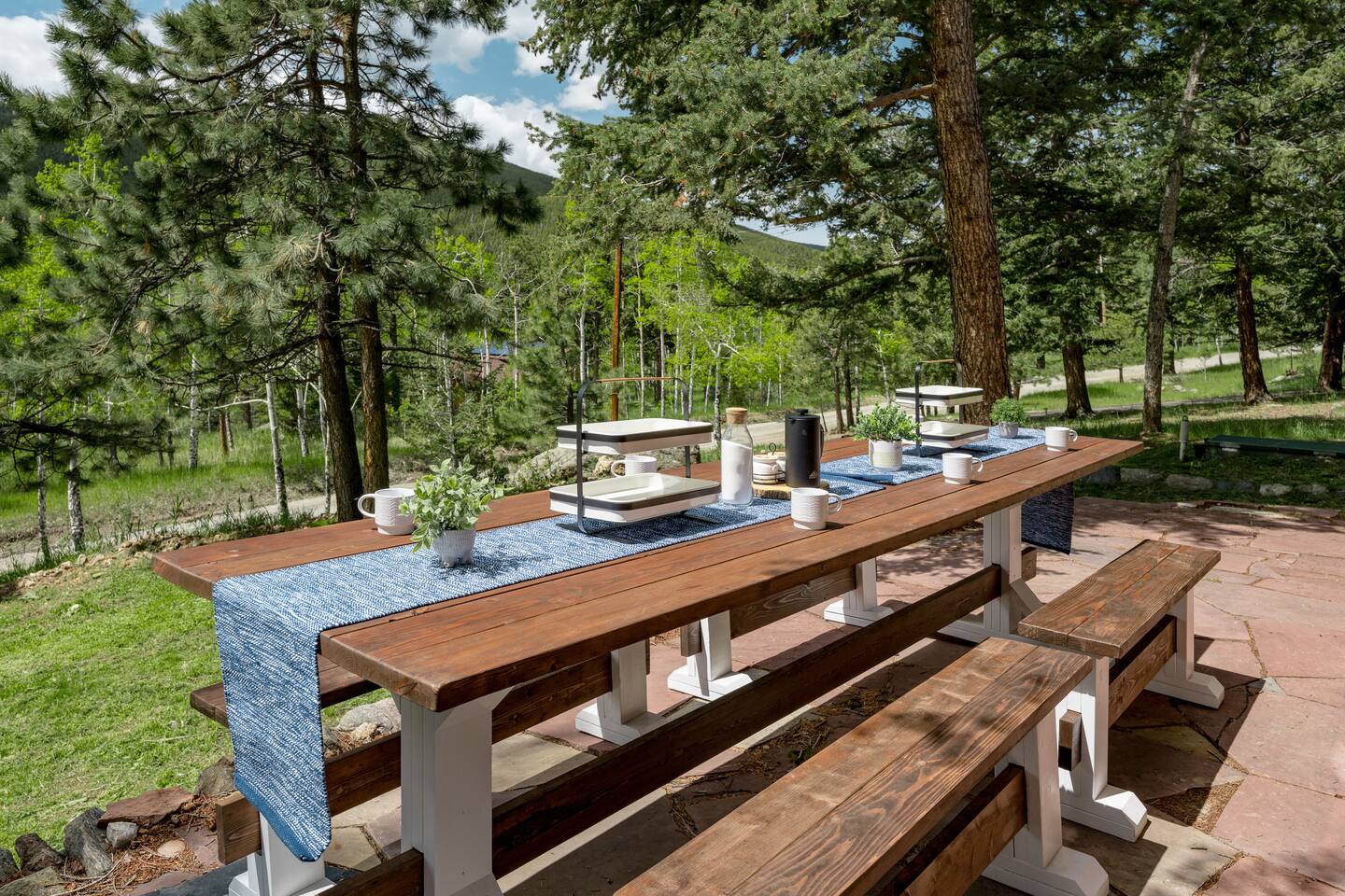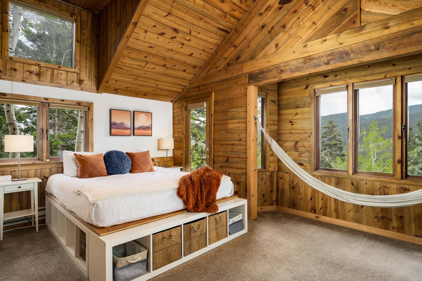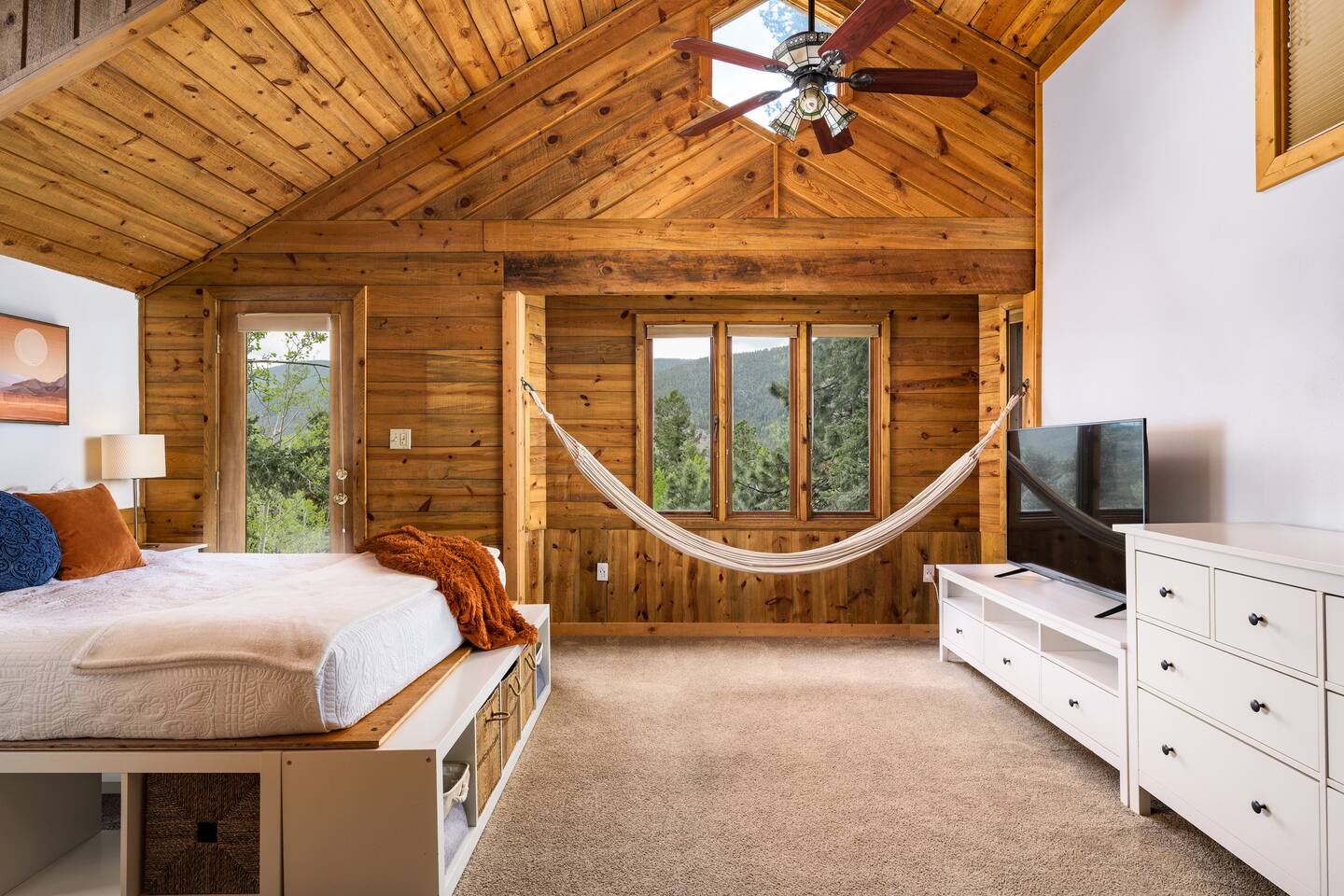 PROPERTY HIGHLIGHTS: ✔ 4-bedroom castle-style cabin with a detached studio suite ✔ Outdoor Finnish barrel sauna overlooking the forest ✔ Open-layout kitchen with a central island for memorable meals ✔ Comfortable bedrooms each with unique charm and character ✔ Farmhouse dining area plus flexible indoor/outdoor space ✔ Relive classic moments with a record player by the warmth of the fireplace. ✔ Swing gently in an indoor hammock for ultimate relaxation ✔ Unwind in a detached studio suite featuring a fireplace and its own entertainment setup. ✔ Designated area for outdoor gear, perfect for adventurers ⚠️ IMPORTANT NOTICE: FIREPIT USE CURRENTLY PROHIBITED BY THE COUNTY ______________________________________ LOCATION PERKS: 📍 Evergreen Lake – offers paddleboarding, kayaking, and trails | 13-minute drive 📍 Alderfer/Three Sisters Park – Iconic rock formations and diverse hiking trails | 20-minute drive 📍 Bergen Peak via Elk Meadow Park – Challenging summit hike with panoramic views | 10-minute drive 📍 Maxwell Falls – Picturesque waterfall hike through lush forest | 20-minute drive 📍 Hiwan Heritage Park & Museum – Historic log estate with engaging exhibits | 14-minute drive 📍 Evergreen Nature Center – Interactive wildlife displays and educational programs | 15-minute drive 📍 Evergreen Golf Course – Scenic 18-hole course nestled in the mountains | 14-minute drive 📍 Downtown Evergreen – Quaint shops, art galleries, live music, and local dining | 14-minute drive 📍 Echo Mountain – Skiing, snowboarding, and tubing with night skiing options | 20-minute drive 📍 Red Rocks Amphitheatre – World-renowned outdoor concert venue and hiking trails | 25-minute drive 📍 Lookout Mountain – Panoramic vistas and Buffalo Bill Museum & Grave | 20-minute drive 📍 Lariat Loop Scenic Byway – Historic 40-mile drive showcasing Colorado’s natural beauty | Accessible nearby 📍 Tiny Town & Railroad – Charming miniature village and train rides for families | 30-minute drive 📍 O'Fallon Park – Serene picnic spots and fly fishing along Bear Creek | 20-minute drive ______________________________________