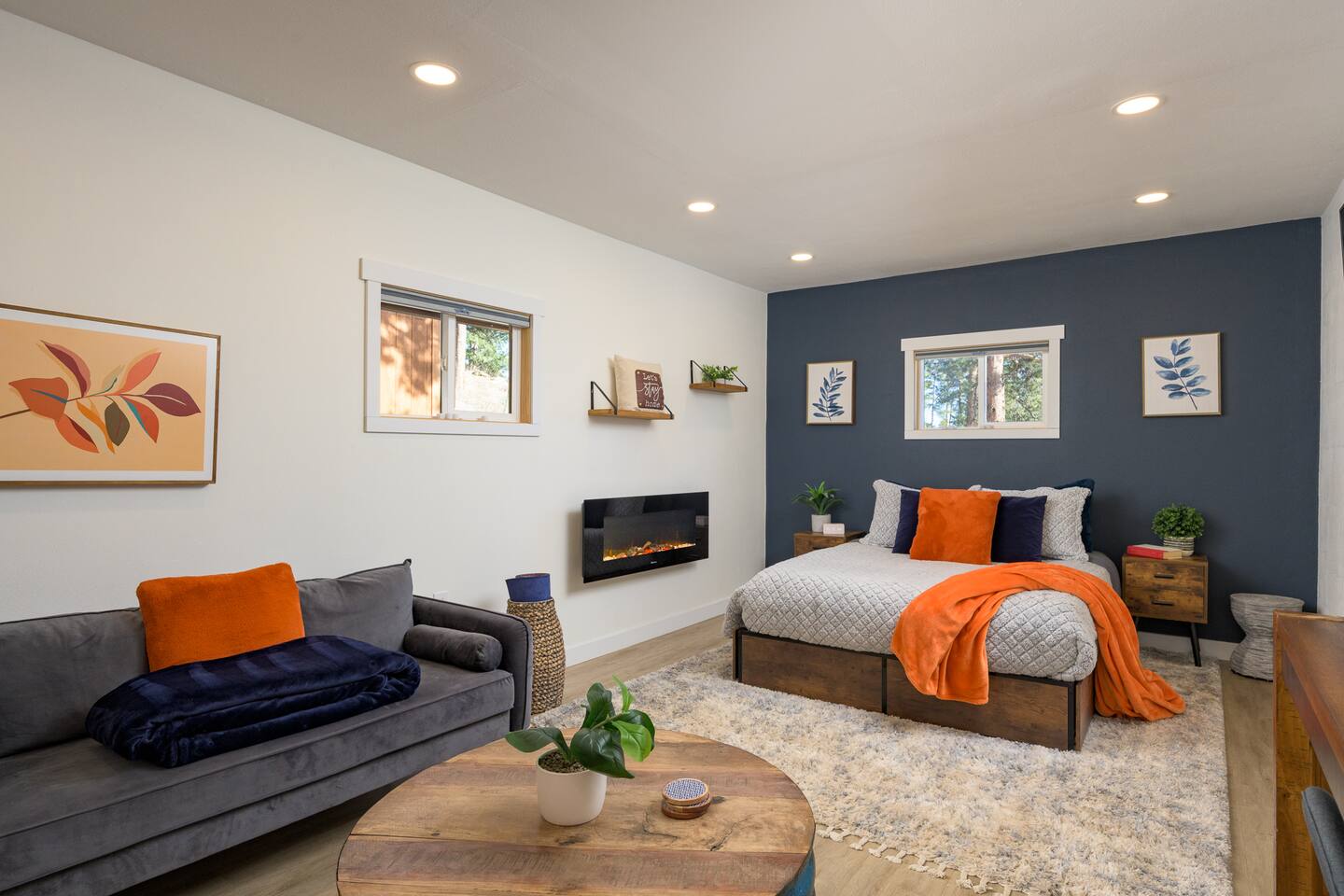 ✔ Private entrance with easy self check-in using smart locks ✔ Separate studio bedroom with fireplace, TV, and queen bed ✔ Parking available for multiple vehicles for your convenience ______________________________________